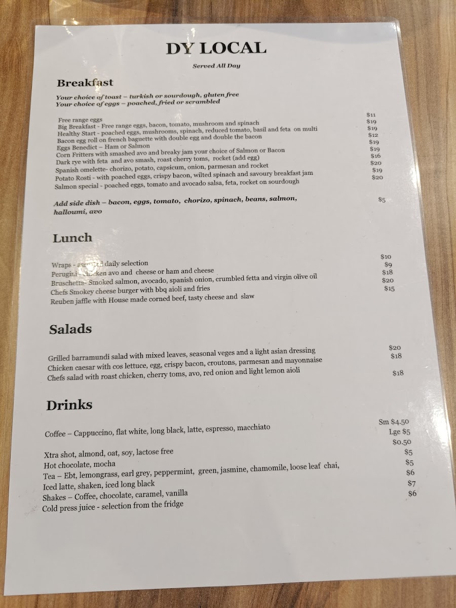 Located in Dee Why, this cafe offers a diverse menu suitable for breakfast, brunch, and lunch occasions. The menu is structured to cater to those seeking light meals, casual dining, and coffee breaks.